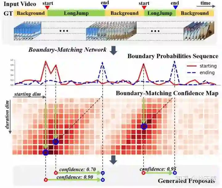 因此,为了解决BSN方法中所存在的缺陷,我们在这篇论文中提出了一种新的时序提名置信度评估机制-边界匹配机制(Boundary-Matching mechanism, BM mechanism),以及基于边界匹配机制的边界匹配网络(Boundary-Matching Network, BMN):