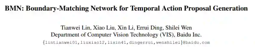 [1] T. Lin, X. Liu, X. Li, et al. BMN: Boundary-Matching Network for Temporal Action Proposal Generation. arXiv preprint arXiv:1907.09702, 2019.