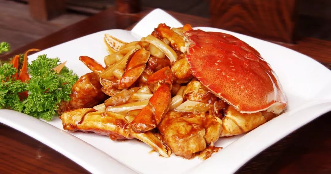 我们当时选了上海年糕炒蟹,用石锅呈上,酱汁儿浸着的年糕一直被石锅炙得滋滋响。举起粗细不输给年糕的蟹腿,对准蟹腿根咬下第一口,蟹肉就堵满了嘴巴,我再说不出“螃蟹肉塞牙缝都不够”的怨言。配着年糕的软糯,长这么大第一次吃螃蟹吃出了踏实。