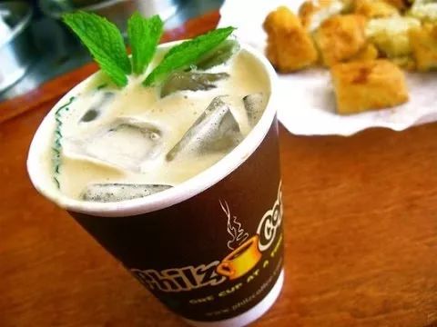 莫吉托本来是源自古巴的一种鸡尾酒,基本材料是淡朗姆酒、糖、青柠汁、苏打水和薄荷。Philz巧取了薄荷的灵感来改造咖啡,跟那些不是重焦糖就是盖奶油球的典型美式咖啡饮料区分开来,显得清丽脱俗,成为自家招牌饮品。