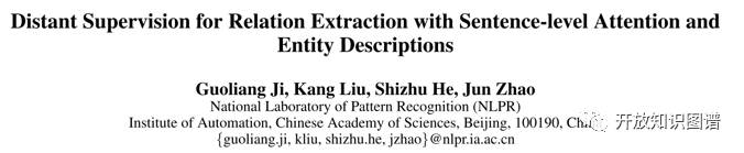 Citation: Ji,G., Liu, K., He, S., & Zhao, J. (2017). Distant Supervision for RelationExtraction with Sentence-Level Attention and Entity Descriptions. Ai,3060–3066.