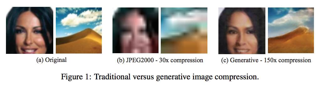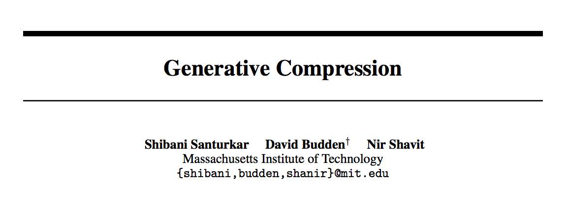 传统的图像和视频压缩算法要依赖手动调整的编码器/解码器对(多媒体数字信号编解码器,codec),缺乏适应性,对被压缩的数据也不可知。在这篇论文中,我们描述了生成式压缩的概念,也就是数据的压缩使用生成式模型。我们也表明这是一个值得追随的方向,可在图像和视频数据上取得更准确的、视觉上更享受的高压缩重建。我们也证明,相比于传统的变长度编码方案,生成式压缩在比特误码率上有更大的复原力(例如,从有噪声的无线通信频道)。