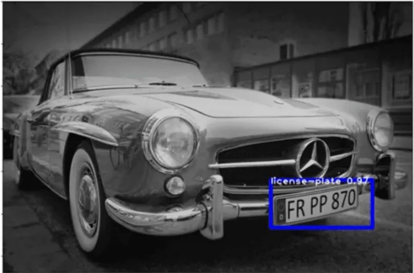 起初,我在微信公众号里看到一篇文章《使用Python和YOLO检测车牌》。文中展示的检测结果如下,其实这种检测结果并不是一个优良的结果,可以看到检测框里的车牌是倾斜的,如果要识别车牌里的文字,那么倾斜的车牌会严重影响车牌识别结果的。