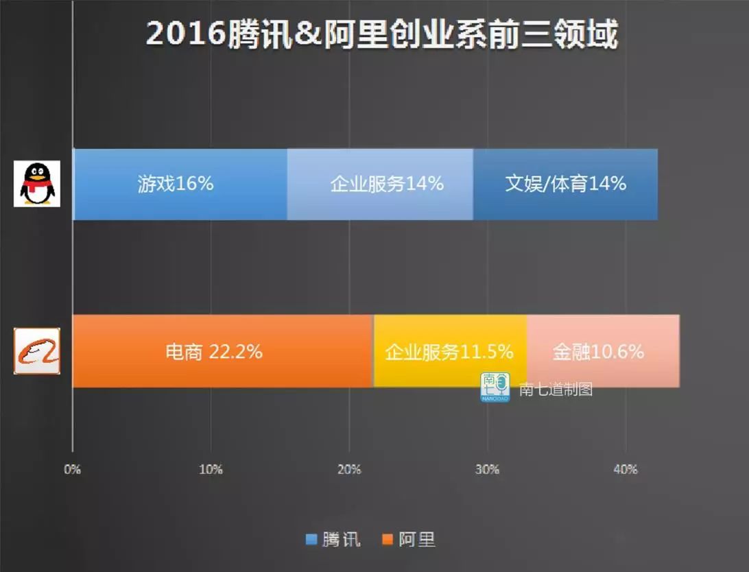 腾讯阿里创业系前三领域