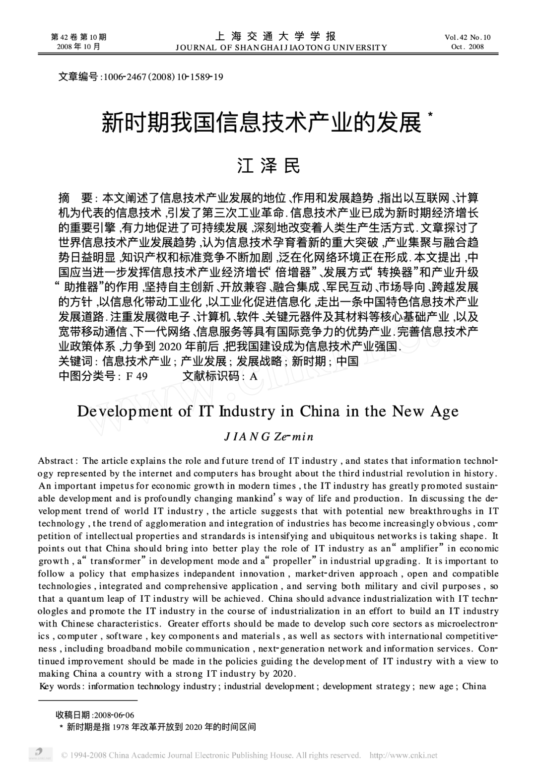 以下为《新时期我国信息技术产业的发展》论文全文: