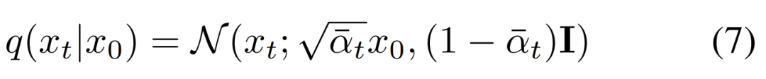为了训练 DDPM,研究者需要一个样本 x_t 以及相应的用于将 x_0 转换为 x_t 的噪声。最后,他们可以对公式 (1) 进行重写,作为一个单步执行,具体如下公式 (7) 所示