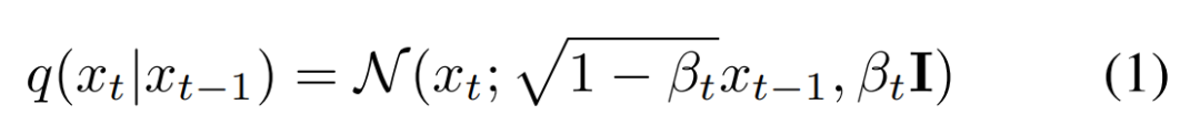 研究者使用扩散模型作为生成模型。与其他生成模型一样,DDPM 学习给定训练集中图像的分布。在推理过程中,首先采样一个随机噪声向量 x_T 并逐步对其进行去噪,直到它生成高质量输出图像 x_0。在训练过程中,DDPM 方法定义一个扩散过程,从而在 T 个时间步内将图像 x_0 转换为高斯白噪声(white Gaussian noise) x_T ∼ N (0, 1)。前向中的每一步如下公式 (1) 所示:
