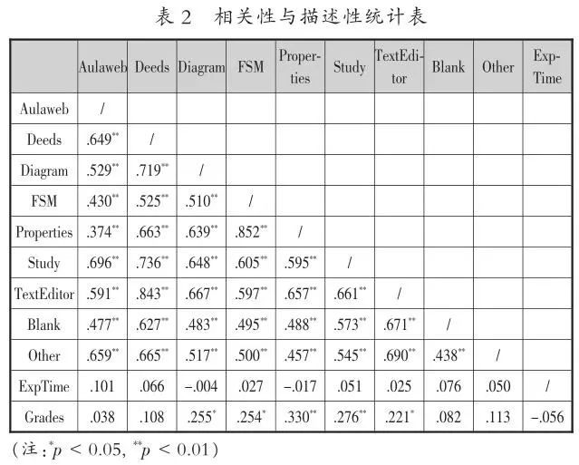 首先,本研究采用描述统计、相关分析等方法对学习者学习行为、实验模拟时间以及学习成绩分布情况和各变量之间的相关关系进行探索。