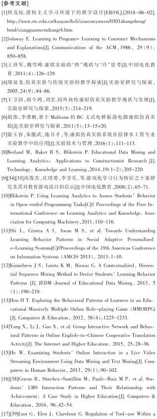 近年来,大量数字化虚拟仿真实验平台的涌现,为学习者的建构过程测评提供了可能。虚拟仿真是指借助于多媒体、仿真和虚拟现实等技术,使用计算机对传统实验各操作环节进行模拟和仿真[3]。由于该方式具有缓解经费紧张、利于实验教学和设施利用、利于学生创新能力培养等多方面的优势[4],在学科教学中得到了越来越广泛的应用[5-7]。与此同时,随着信息技术、数据存储技术的发展,学习者在虚拟仿真实验平台下的实验操作过程数据,也很容易被收集起来。基于数据挖掘及学习分析技术,教师借助学生的学习过程数据,对学生的学习习惯、学习方式进行挖掘,可关注到每位个体在学习中的问题,使得提供更具针对性的学习支持服务成为可能。学习分析和教育数据挖掘,是当前学习科学领域的研究热点。当前大部分的学习分析和教育数据挖掘,聚焦于在线理论知识学习和认知课程,这些学习任务高度结构化且测评具有明确的答案。然而,对于很多实践操作类学习任务,由于建构过程的复杂性,反馈和评价非常困难,相关的研究也较为缺乏[8]