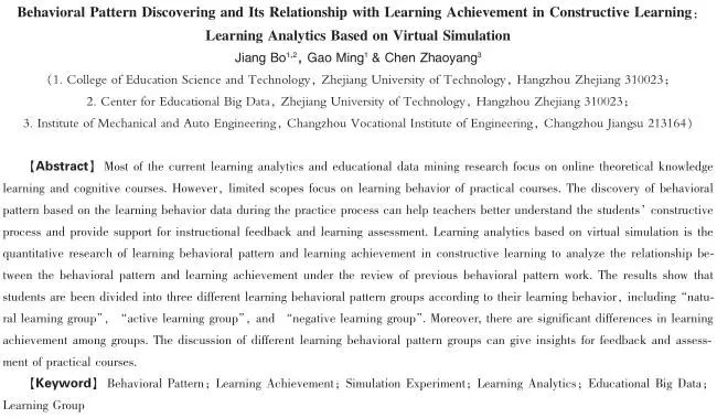 作者简介:江波,浙江工业大学教育大数据研究中心常务副主任,副教授,博士,硕士生导师,研究方向:教育数据挖掘与学习分析;髙明,浙江工业大学教育科学与技术学院在读硕士研究生,研究方向:教育数据挖掘与学习分析;陈朝阳,常州工程职业技术学院机电与汽车工程学院,助教,硕士,研究方向:职业教育研究。