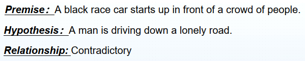 文本推理是指给定文本形式的前提(Premise)与前提相关的某一假设(Hypothesis),建模文本语义与文本结构,以判断前提与假设之间的关系。具体的例子如下图所示: