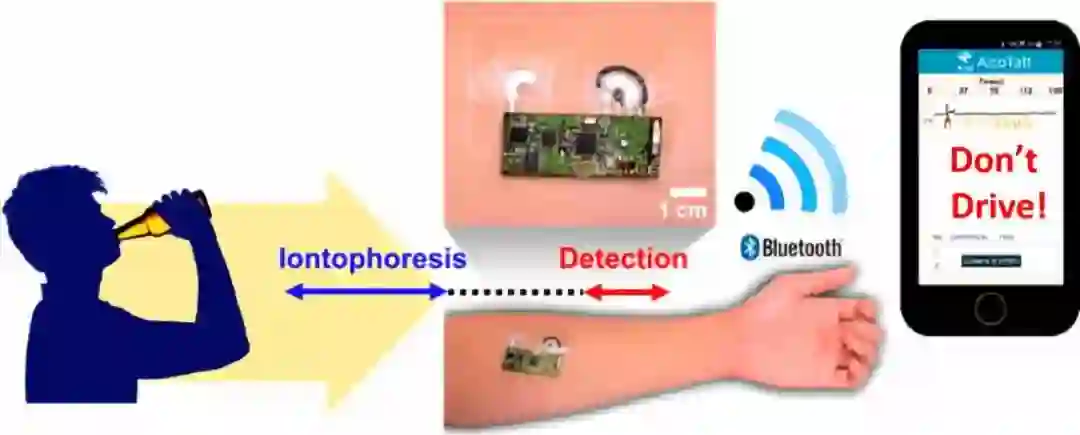 检测汗液中酒精含量的电子纹身(图片来源:美国化学会)