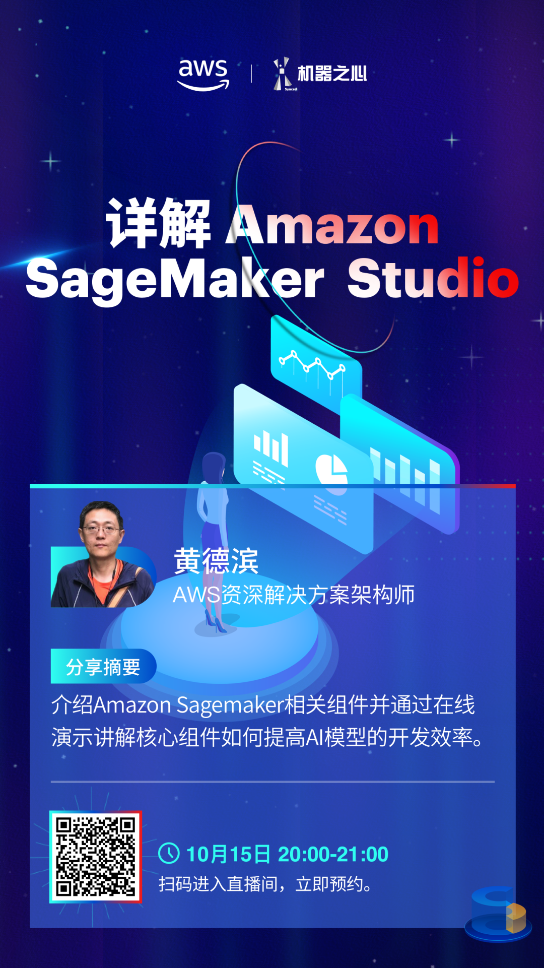 10月15日,AWS资深解决方案架构师黄德滨将直播讲解Amazon SageMaker的相关组件,如studio、autopilot等,并通过在线演示展示这些核心组件对AI模型开发效率的提升。
