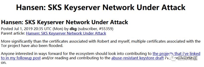 导入中毒版证书会破坏存在缺陷的 OpenPGP。中毒证书已经存在于 SKS Keyserver Network 中,没有理由认为攻击者在对两个证书下毒后就停止攻击。dkg 称 Tor 项目的多个证书也遭到攻击。这一攻击无法在短期内被 SKS keyserver 或 OpenPGP Working Group 减轻影响,未来发布的 OpenPGP 将会包含一些削弱攻击的方法,但目前没有时间表。权宜之计是不要从 SKS Keyserver Network 提取数据。Keyserver 使用的软件是一名研究员使用 OCaml 语言为自己的博士论文开发的,社区缺乏理解其算法或该语言的人才。软件没人维护,也没有人有资格去修改代码。