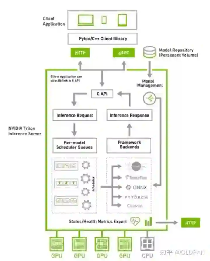 triton inference server,很好用的服务框架,开源免费,经过了各大厂的验证,用于生产环境是没有任何问题。各位发愁flask性能不够好的,或者自建服务框架功能不够全的,可以试试triton,老潘很推荐的哦。
