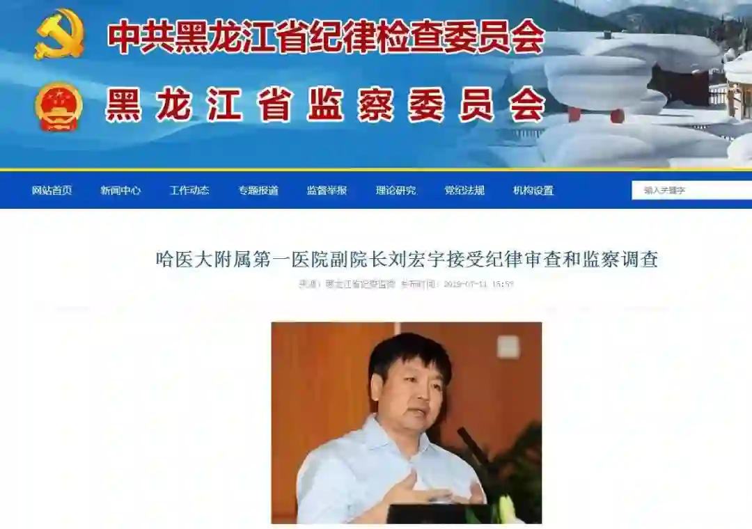 近日,据黑龙江省纪委监委消息,哈尔滨医科大学附属第一医院副院长刘宏宇涉嫌严重违纪违法,目前正接受省纪委监委驻省教育厅纪检监察组纪律审查和大庆市监委监察调查。