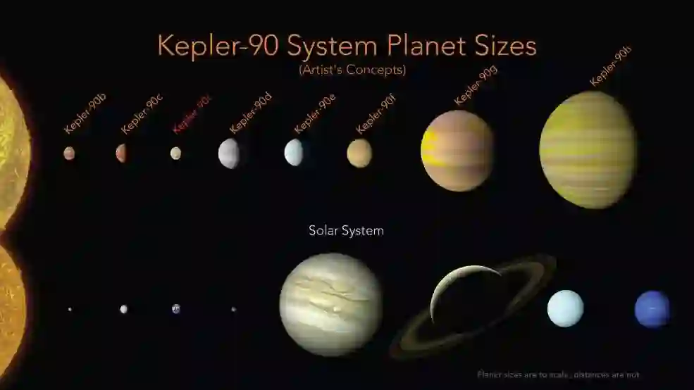为了缩小搜索范围,科学家们研究了已知的可包含两颗及更多的系外行星的 670 颗恒星。最终发现了两颗新的行星:开普勒 80g 和开普勒 90i。重要的是,开普勒 90i 是开普勒 90 星系中的第八颗行星,这使得我们确定了开普勒 90 是我们已知的太阳系以外的第一个 8 行星星系。