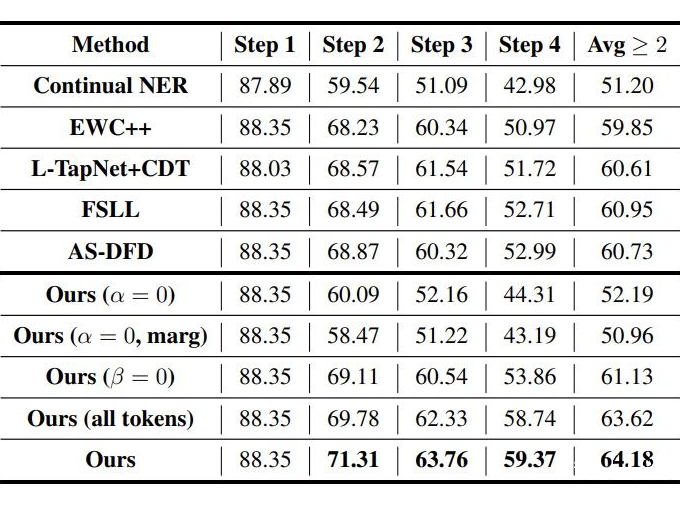 CI NER:类增量学习 NER 的 SOTA;EWC++:一个解决灾难性遗忘的方法;FSLL:类增量学习图片分类的 SOTA;AS-DFD:无数据蒸馏的文本分类的 SOTA;L-TAPNet+CDT:少样本序列标注的 SOTA。