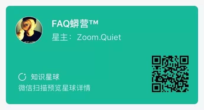 虽说他常年为Python用户社区建设做贡献,在圈子里的名气已经足够大了,但我不搞Python。可是从那之后,我竟然就在各种地方看到Zoom.Quiete的大名。不说别的,在豆瓣,就看到这家伙一会儿鉴赏《人工智能简史》,一会儿品评《鱼翅与花椒》,再过几天,又说顺着我的公众号的介绍去读完了《“阿波罗”登月发射倒计时》…… 总之,这是个靠谱技术男,但又不是“八杆子打不出一个屁”来的闷骚技术男。