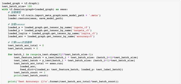 最后在validation上的准确率大约稳定在了70%左右,我们接下来看一下在test数据上的准确率。下面的代码是在test测试准确率的代码。