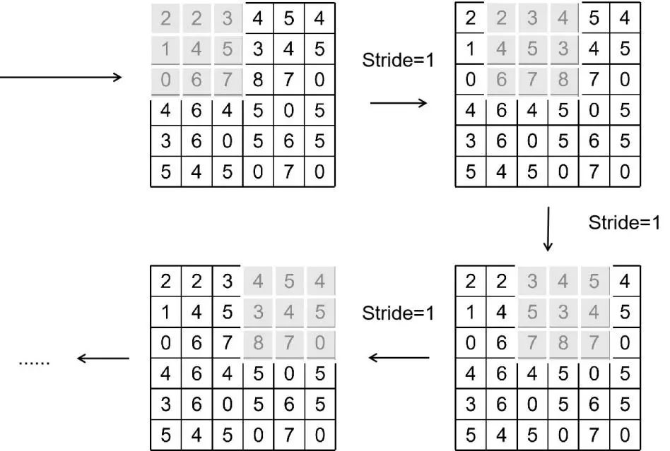 图2.22 步长为1的卷积核移动