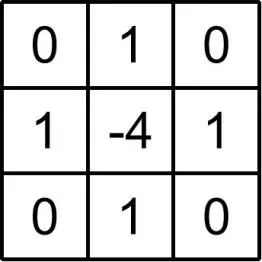 我们在定义一个卷积核的时候,主要需要关注两个方面,一个是卷积核的尺寸,另一个则是卷积核的参数,如图2.19所示,这是一个拉普拉斯算子,也可以说是一个的卷积核,它的作用是提取边缘,如图2.20所示,图片经过了拉普拉斯算子的卷积操作就变成了一幅边缘信息明显的图片。