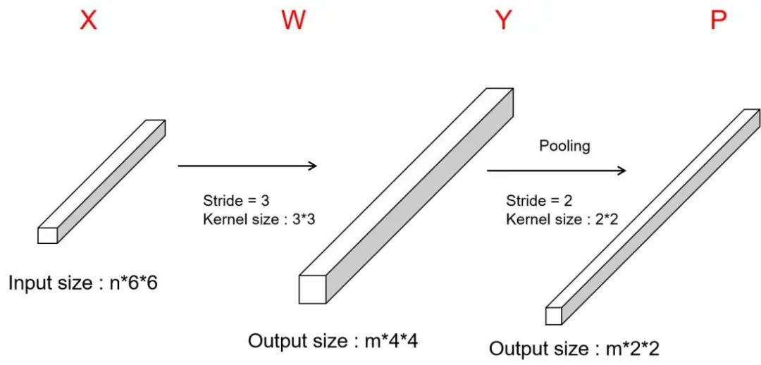 池化层(Pooling layer)在卷积神经网络中通常设置在卷积层之后,用来缩小特征图尺寸或者进一步提取特征。它与卷积层的典型连接如图2.31所示,图中P部分代表池化层部分,由于经过了卷积层之后,我们得到的特征图的尺寸是,所以我们采用步长为2,核尺寸为2的池化模板来对其进行池化操作,最终得到的特征图的深度不变,尺寸却变为了