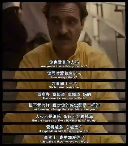 萨曼莎这个人格的出现,本身就是为契合西奥多而计算得出的最优解,加上高超的智慧水平,虽然她并不具备一个原有的、真实的自己。以这样一个不真实的身份去和西奥多碰撞、互相影响,艰难地彼此契合。
