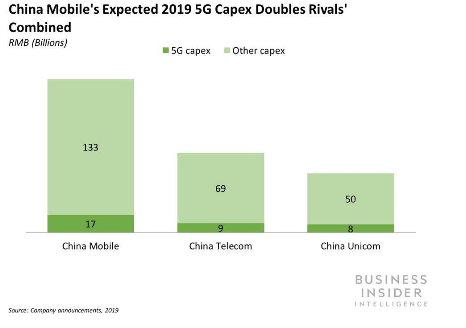 2019年,联通在580亿元(约84亿美元)资本支出的基础上,又给5G服务增加了80亿元(约12亿美元)的预算。