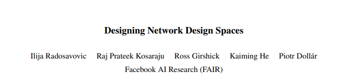 近日,何恺明大神组又发了一篇新论文,提出了一种新的网络设计范式。与以往研究不同,他们没有专注于设计单个网络实例,而是设计出了参数化网络群的网络设计空间。这种新的网络设计范式综合了手工设计网络和神经架构搜索(NAS)的优点。在类似的条件下,他们设计出的网络超越了当前表现最佳的 EfficientNet 模型,在 GPU 上实现了 5 倍的加速。目前,该论文已被 CVPR 2020 接收。