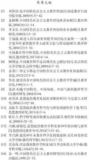 中国特色社会主义教育事业的发展离不开中国特色社会主义教育理论的支撑与指导。基于Citespace的中国特色社会主义教育理论可视化分析,为我们提供了一个认识这一研究主题的新视角,使我们不但可以清晰地看到改革开放以来中国特色社会主义教育理论研究的知识结构,还可以看到相关文献所呈现出来的中国特色社会主义教育理论研究的核心主题,而且可以洞见未来中国特色社会主义教育理论研究的发展趋势。
