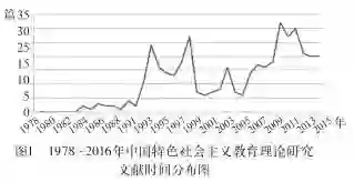 在所设定的检索条件下,相关文献的时间分布区间为1978~2016年。以发文量(单位:篇)为纵坐标,以时间(单位:年)为横坐标,可以绘制出中国特色社会主义教育理论研究文献时间分布图(见图1)。