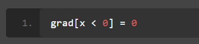 如果不先自己推导出梯度,这几行代码就可能就无法理解。在这段代码行中,将上有梯度 (grad) 中所有满足条件 [x<0] 的元素的值设置为 0。从数学上讲,这实际上等价于 ReLU 梯度的分段表示,所有小于 0 的值都压缩为 0,并与上游梯度相乘。