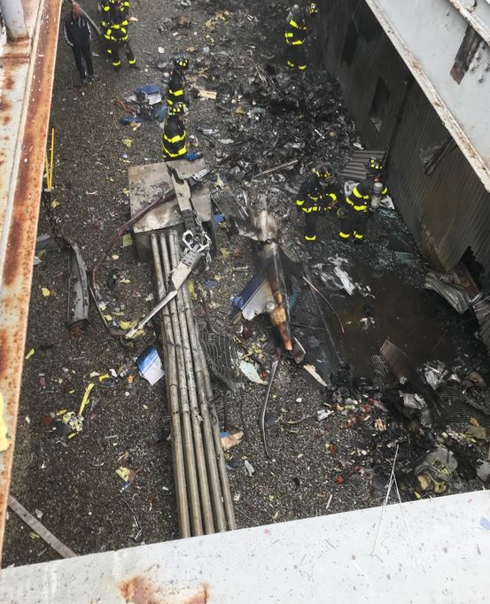 美国航空管理局(FAA)认为飞机上仅有飞行员一人。据纽约市警察局介绍,失事直升机型为奥古斯塔A109,在当天下午1点32分从东河一个直升机停机坪起飞,很快便坠毁。
