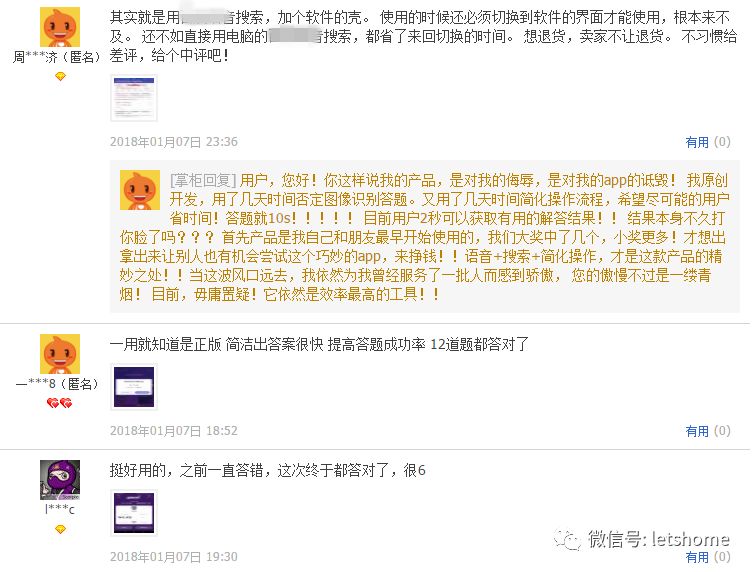 编辑还注意到,在这家淘宝店的评价中,有人质疑店家出售的 APP 不过是某度语音搜索外加软件的壳,实际并不好用,但店家回应……让宅宅忍不住分享出来。