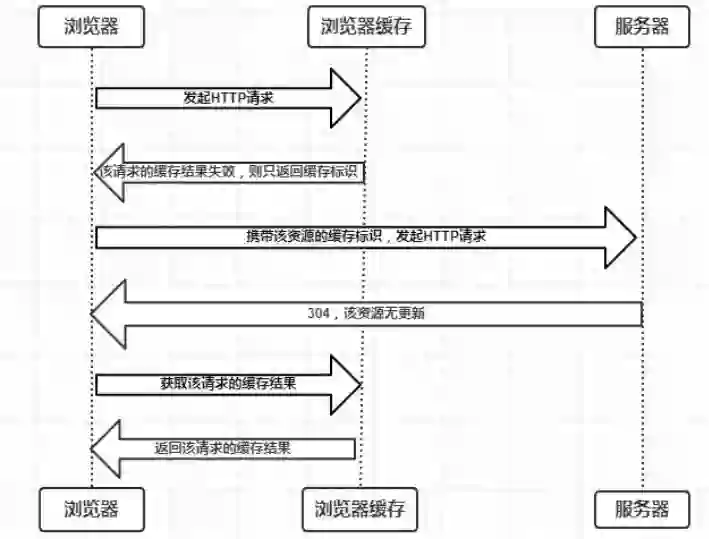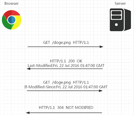 浏览器下一次请求这个资源,浏览器检测到有 Last-Modified这个header,于是添加If-Modified-Since这个header,值就是Last-Modified中的值;服务器再次收到这个资源请求,会根据 If-Modified-Since 中的值与服务器中这个资源的最后修改时间对比,如果没有变化,返回304和空的响应体,直接从缓存读取,如果If-Modified-Since的时间小于服务器中这个资源的最后修改时间,说明文件有更新,于是返回新的资源文件和200。