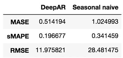 pd.DataFrame.from_dict(agg_metrics, orient='index').rename(columns={0: "DeepAR"}),