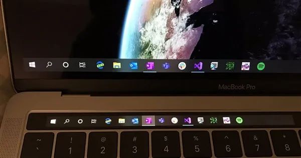 据新浪科技报道,有开发者在为 MacBook Pro 刷入 Windows 10 操作系统后,发现了将 Touch Bar 改造为可触摸任务栏的办法。使用 BootCamp 安装启动 Win10 ,借助了 iBridge Virtual FrameBuffer 驱动、微软 Common Class Generic Parent 驱动等,因为 Windows 不支持 2170 x 60 的显示分辨率,需要强行把高度修改为 100px 。