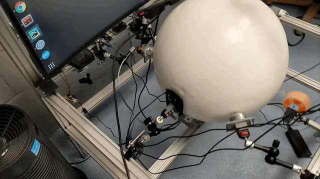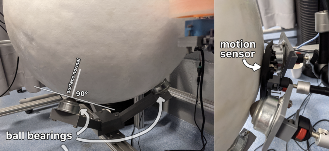 一个泡沫球,让系上安全带的老鼠在上面运动,同时运动激光传感器(由鼠标制成)会追踪球的运动。