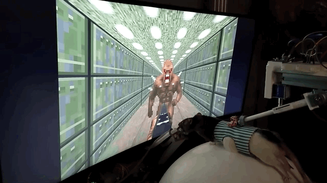 一只9岁的猴子,可以用意念玩乒乓球游戏。现在,国外工程师可以让一只老鼠玩射击游戏Doom,15分不停歇,还要上直播。