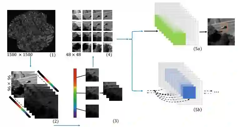 摘要:Hyperspectral imaging holds enormous potential to improve the state-of-the-art in aerial vehicle tracking with low spatial and temporal resolutions. Recently, adaptive multi-modal hyperspectral sensors have attracted growing interest due to their ability to record extended data quickly from aerial platforms. In this study, we apply popular concepts from traditional object tracking, namely (1) Kernelized Correlation Filters (KCF) and (2) Deep Convolutional Neural Network (CNN) features to aerial tracking in hyperspectral domain. We propose the Deep Hyperspectral Kernelized Correlation Filter based tracker (DeepHKCF) to efficiently track aerial vehicles using an adaptive multi-modal hyperspectral sensor. We address low temporal resolution by designing a single KCF-in-multiple Regions-of-Interest (ROIs) approach to cover a reasonably large area. To increase the speed of deep convolutional features extraction from multiple ROIs, we design an effective ROI mapping strategy. The proposed tracker also provides flexibility to couple with the more advanced correlation filter trackers. The DeepHKCF tracker performs exceptionally well with deep features set up in a synthetic hyperspectral video generated by the Digital Imaging and Remote Sensing Image Generation (DIRSIG) software. Additionally, we generate a large, synthetic, single-channel dataset using DIRSIG to perform vehicle classification in the Wide Area Motion Imagery (WAMI) platform. This way, the high-fidelity of the DIRSIG software is proved and a large scale aerial vehicle classification dataset is released to support studies on vehicle detection and tracking in the WAMI platform.