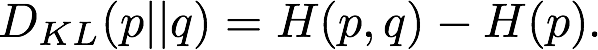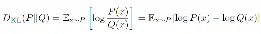 与交叉熵紧密相关,KL 散度是另一个在机器学习中用来衡量相似度的量:从 q 到 p 的 KL 散度如下:D_KL(p||q)。在贝叶斯推理中,DKL(p||q) 衡量当你修改了从先验分布 q 到后验分布 p 的信念之后带来的信息增益,或者换句话说,就是用后验分布 q 来近似先验分布 p 的时候造成的信息损失。例如,在训练一个变分自编码器的隐藏空间表征时就使用了 KL 散度。KL 散度可以用熵和交叉熵表示:
