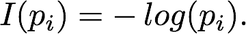 基于以上的非正式需求,我们可以找到一个合适的函数来描述自信息。对于一个可能取值为 x_1,x_2,...,x_n 的离散随机变量 X,它的概率质量函数 P(X),以及任何正的取值在 0 到 1 之间的单调递减函数 I(p_i) 都可以作为信息的度量。此外,还有另外一个关键的属性就是独立事件的可加性;两次连续硬币抛掷的信息应该是一次单独抛掷的 2 倍。这对独立变量而言是有意义的,因为在这种情况下意外性或者不可预测性会增大为之前的两倍。形式上,对于独立事件 x_i 和 x_j 而言,我们需要 I(p_i * p_j) = I(p_i) + I(p_j)。满足所有这些要求的函数就是负对数,因此我们可以使用负对数表示自信息:
