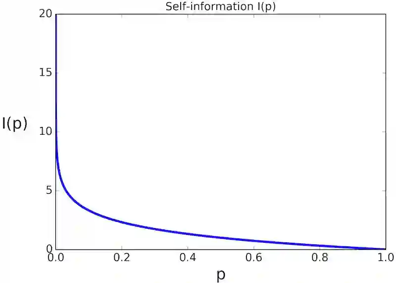 图 1:函数 I(p) 的自信息。小概率对应着较高的自信息,反之亦然。