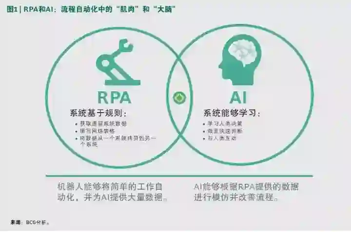 机器人流程自动化(RPA)和人工智能(AI)过去一直被视作相互独立的两个领域——RPA支持者认为AI不实用,而AI爱好者认为RPA太原始——但实际上二者高度互补,相当于大脑和肌肉的关系。企业能够利用RPA实现速赢,同时引进AI战略以实现长期效益和持续优化。
