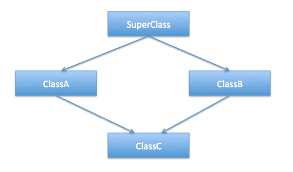 如果有两个类共同继承(extends)一个有特定方法的父类,那么该方法会被两个子类重写。然后,如果你决定同时继承这两个子类,那么在你调用该重写方法时,编译器不能识别你要调用哪个子类的方法。这也正是著名的菱形问题,见下图。