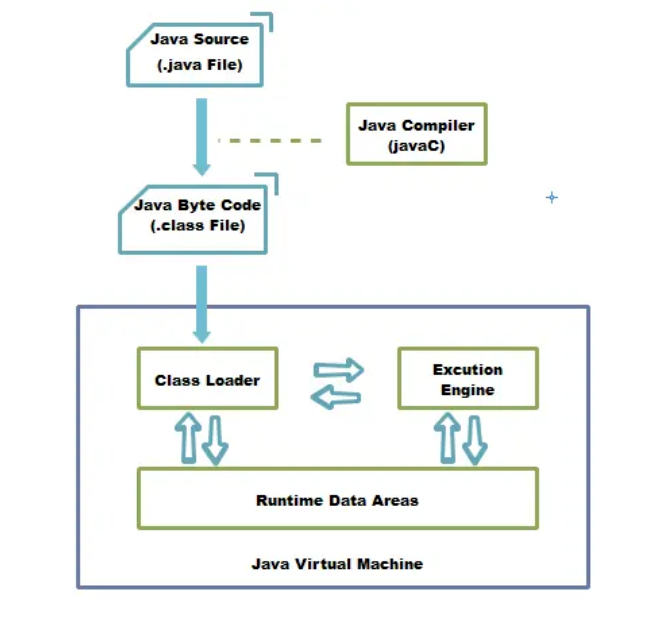我们来尝试理解一下 JVM 的内部结构,它包含了类加载器(Class Loader)、运行时数据区(Runtime Data Areas)和执行引擎(Excution Engine)。