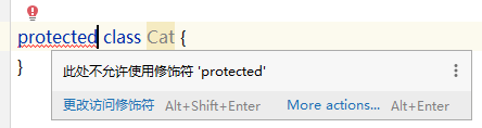 假如硬要通过 private 和 protected 来修饰类的话,编译器会生气的,它不同意。