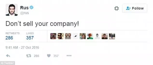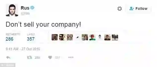 Yusupov 后来发过一条推文:不要卖掉你的公司!这条没有上下文,没有对象的推文,毫无疑问影射了自己的遭遇。