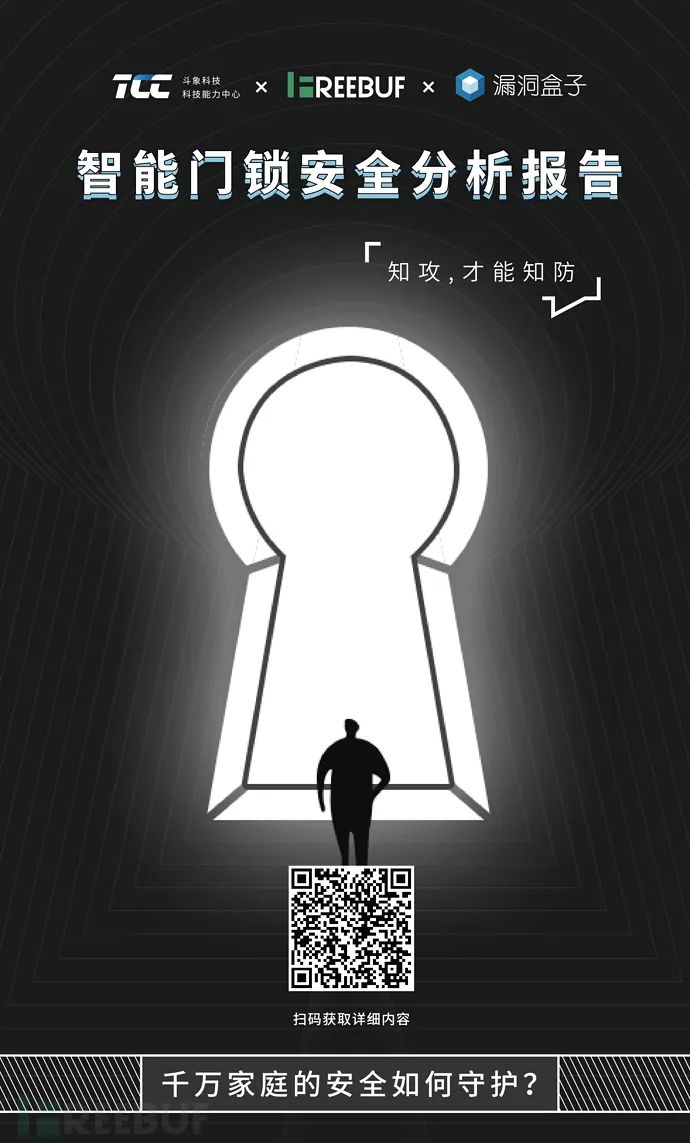 《智能门锁安全分析报告》完整版已经推出,请扫描下方二维码或点击底部【阅读原文】登记领取~